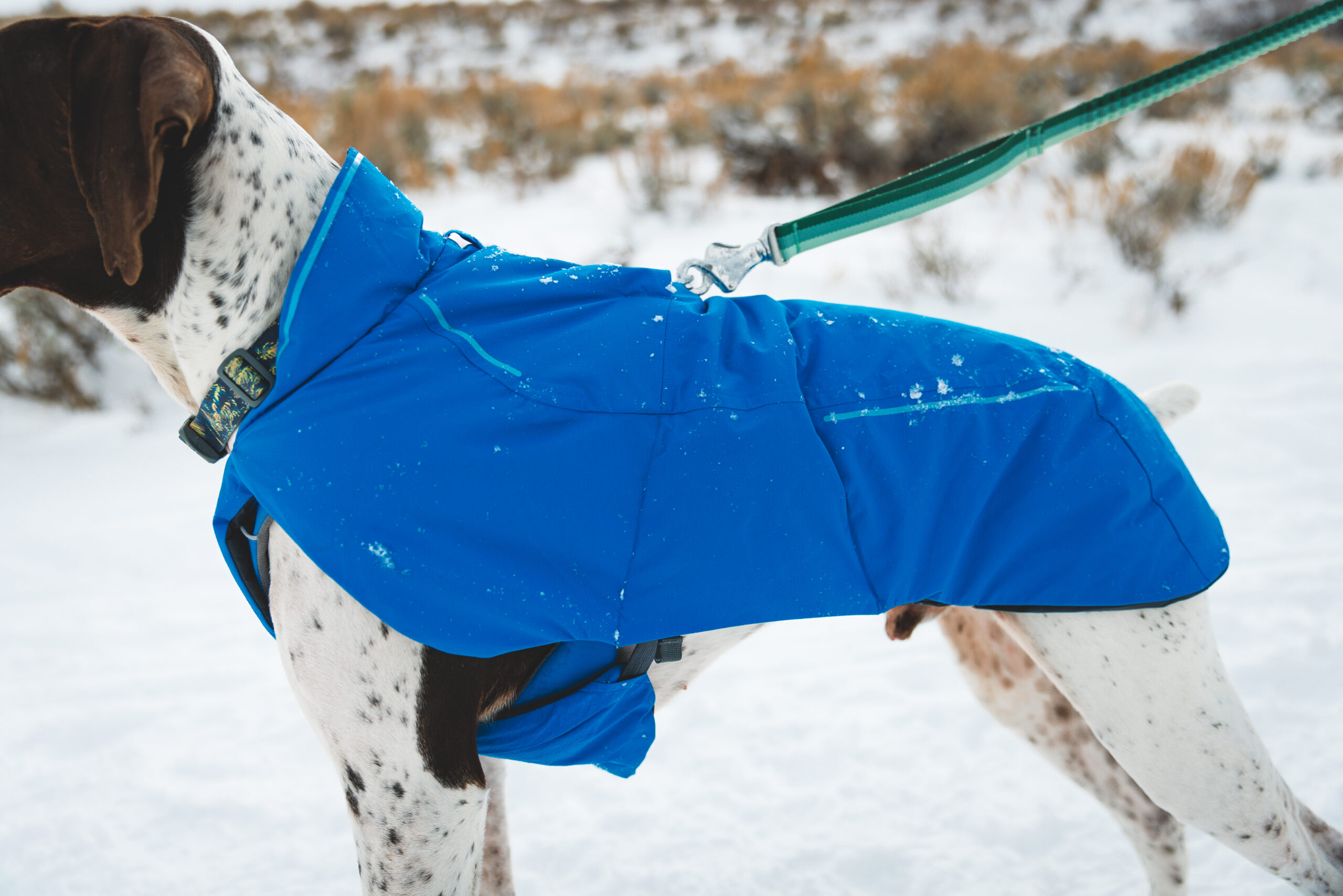 La Vert présente une couverture imperméable étendue sur les hanches et les cuisses et une isolation loft recyclée qui offre une chaleur exceptionnelle. Les boucles autour des jambes offrent à la veste une bonne tenue lorsque le vent se met à souffler, tandis que l’échancrure pour attacher la laisse permet au chien de porter la Vert par-dessus un harnais.