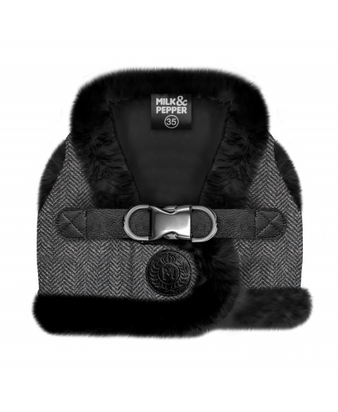 Manteau harnais Wallace par Milk & Pepper en Chevron Gris et doublure en fourrure épaisse pour petits chiens et chiens moyens